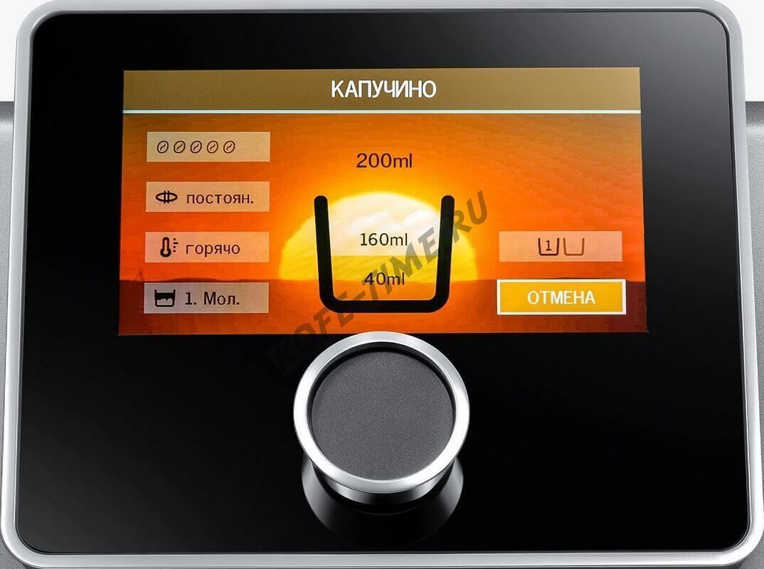 Большой сенсорный дисплей с диагональю экрана 5'' Поддержка Bluetooth для использования мобильного приложения. Восемь цветов подсветки ёмкости для воды. Особенно тихий измельчитель, которого ранее не было ни у одной другой автоматической кофемашины.